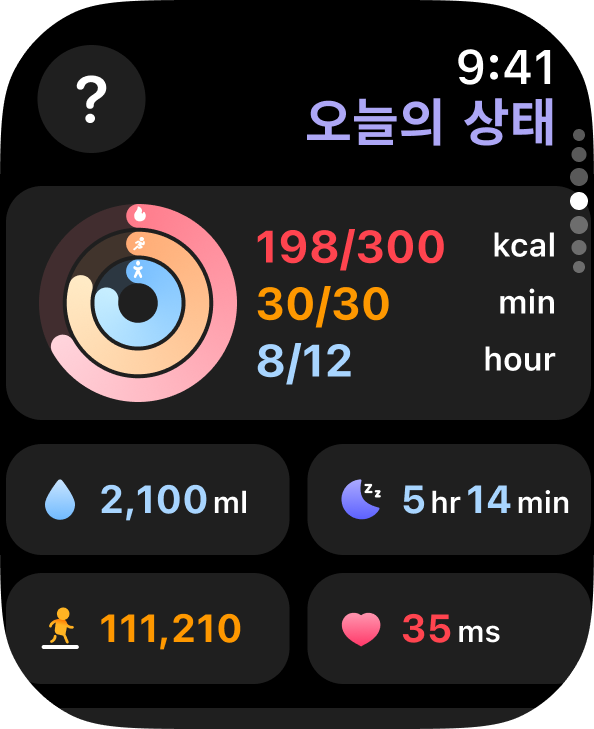 수면, 운동, 스트레스(HRV), 생리, 수분 등 다양한 건강 데이터를 한 번에 추적하고, AI가 쉽게 이해할 수 있게 보여줍니다.