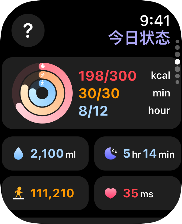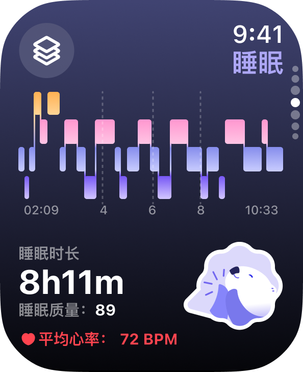 帮你自动追踪睡眠、锻炼、压力(HRV)、经期、喝水等十余种健康数据,并提供专业的数据分析和丰富手表的小组件